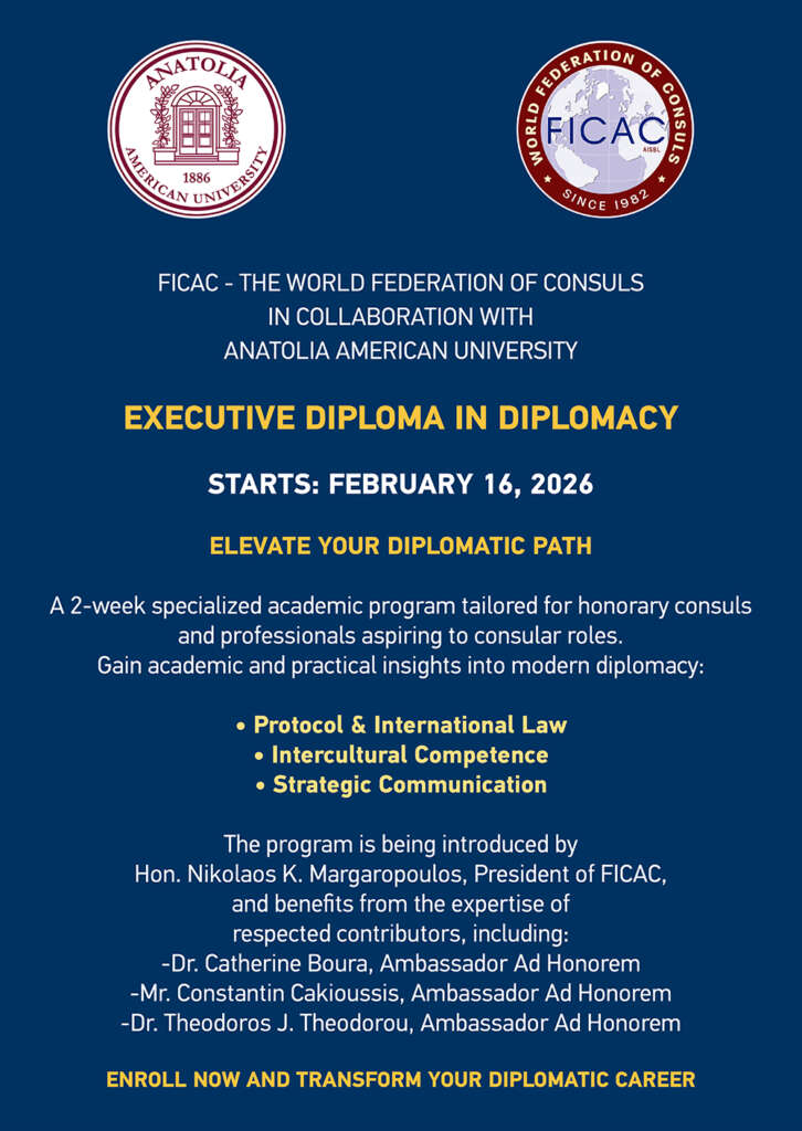 FICAC in collaboration with Anatolia American University are pleased to announce the third cohort of our Executive Diploma In Consular Practice and Diplomacy.